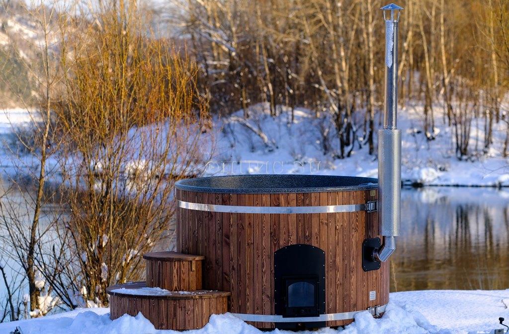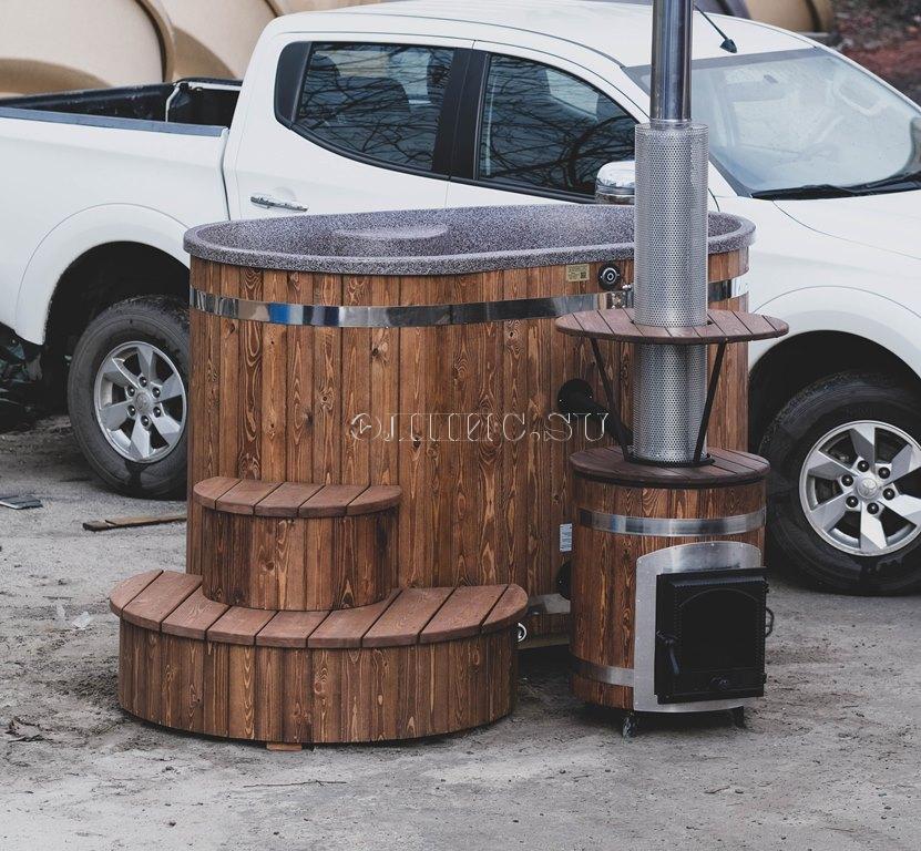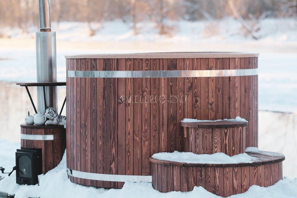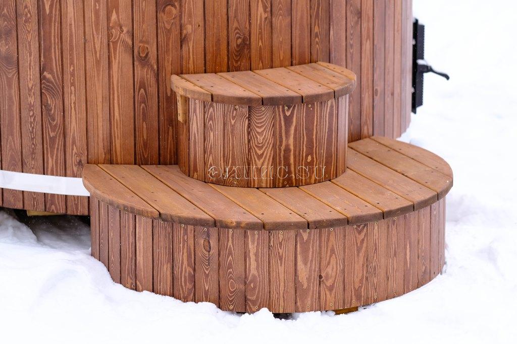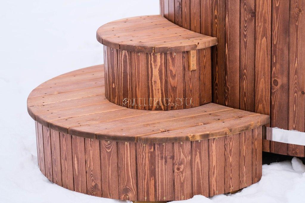 Подиум для купели из двух ступенек, шириной 1200 мм. высотой 650 мм. комбенированная сосна - лиственницы с защитным покрытием.