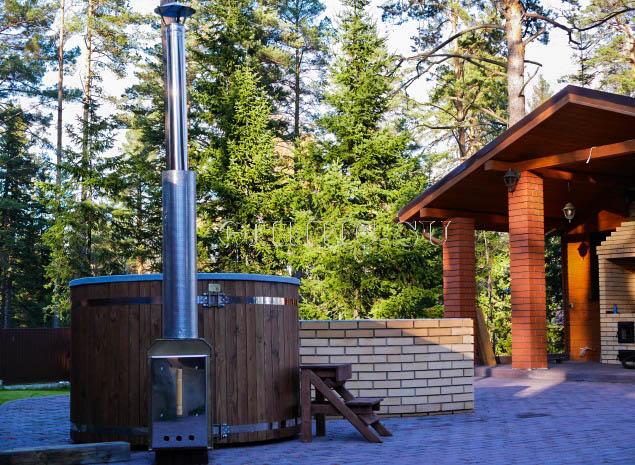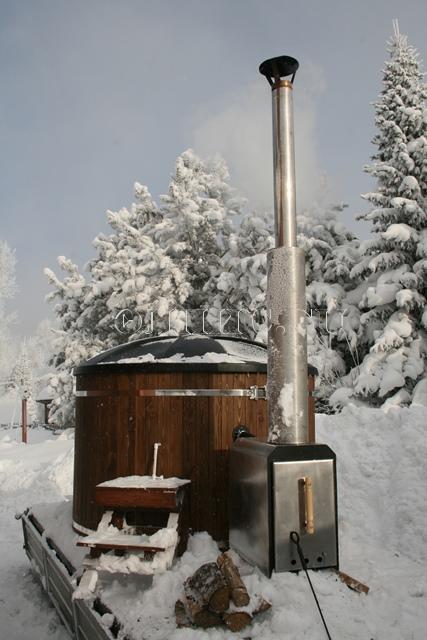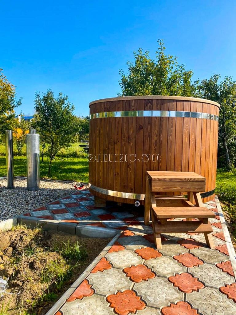 Лестница для купели из двух ступенек высотой 550 мм. из лиственницы с защитным покрытием.