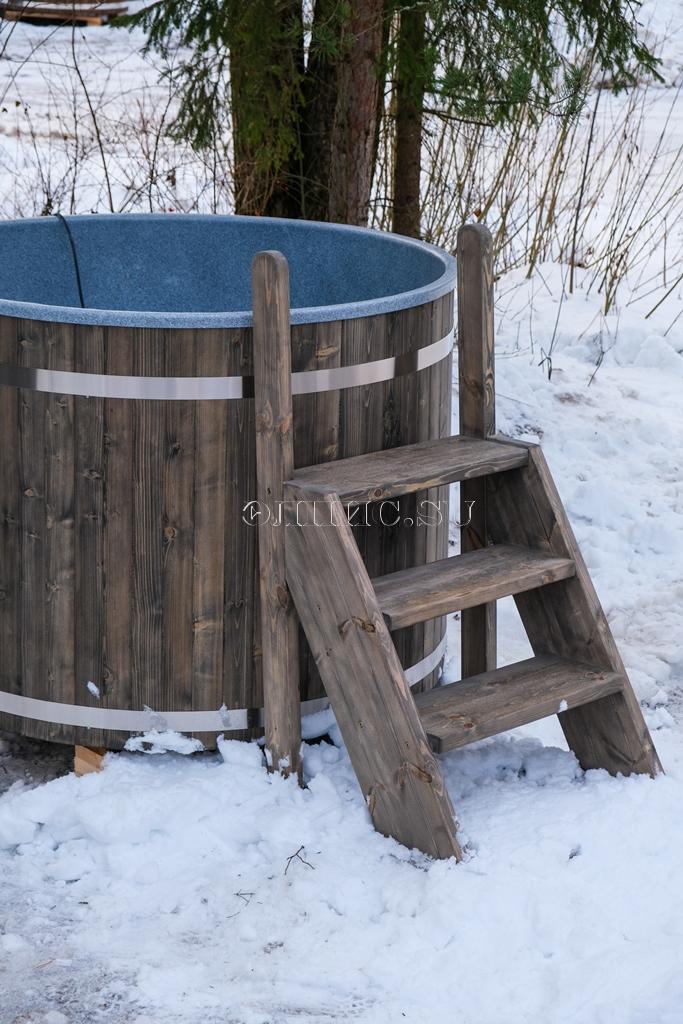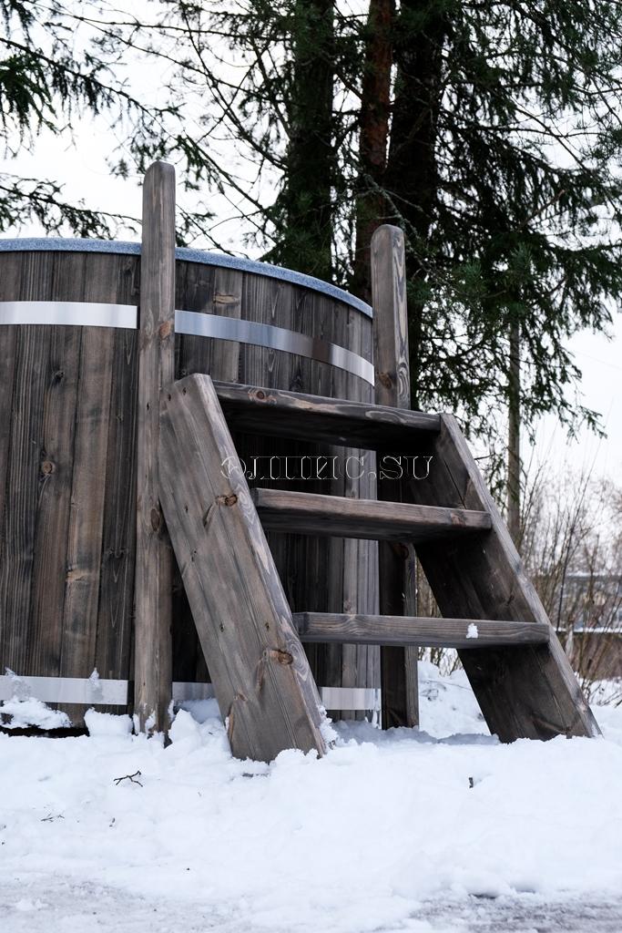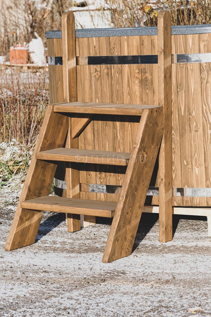 Лесенка для купели состоит из трех полноценных ступеней глубиной 250 -300 мм. + поручни.
