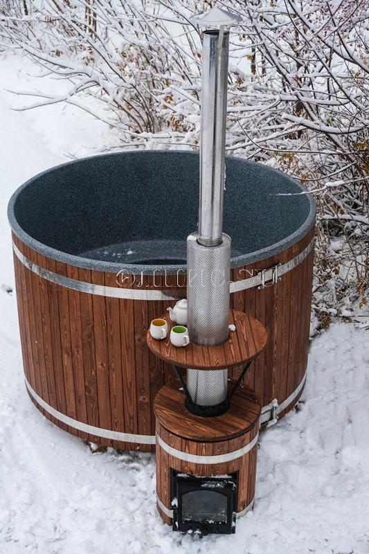 Столик для напитков монтируется вторым ярусом к водогрейной печи.