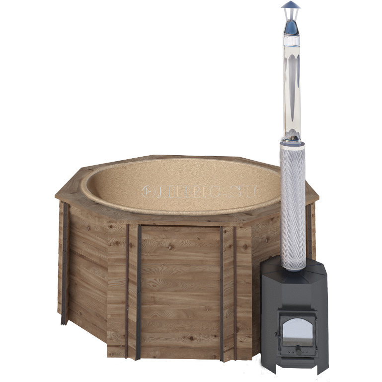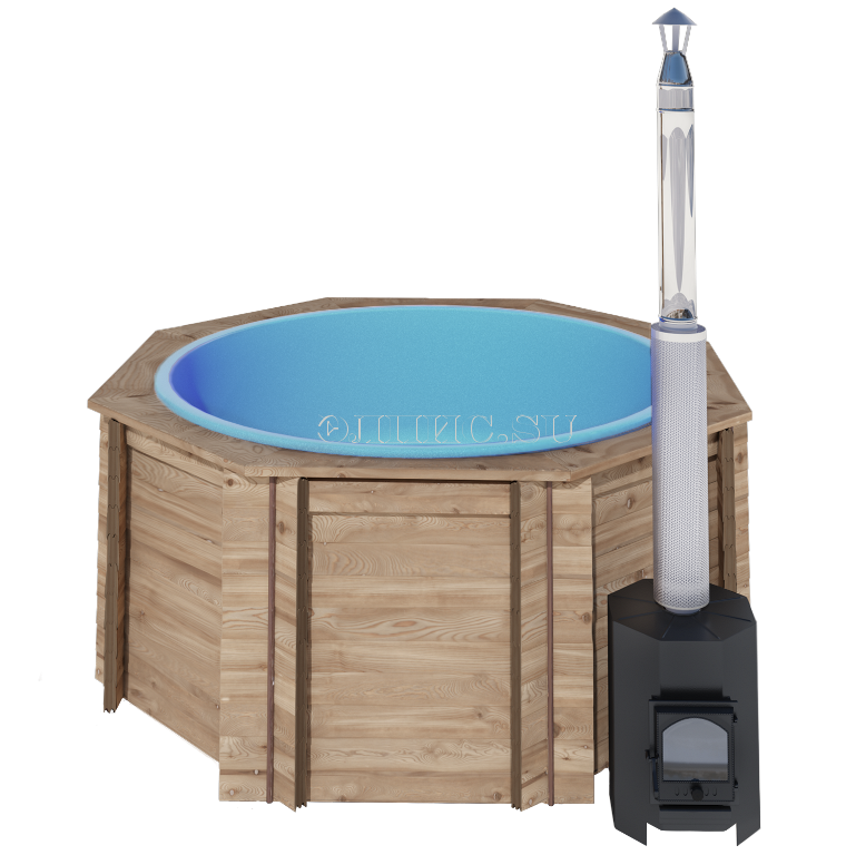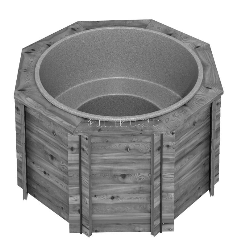 1. Деревянная купель(фасад - сосна, дно- лиственница) с цельнолитой пластиковой вставкой.
