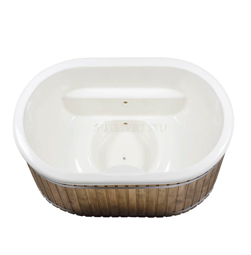 1. Деревянную купель (фасад - сосна, дно - лиственница) с цельнолитой пластиковой вставкой.