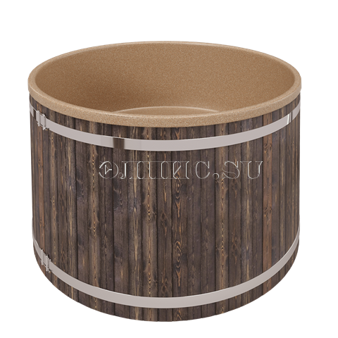 1. Деревянную купель (фасад - сосна, дно - лиственница) с цельнолитой пластиковой вставкой.