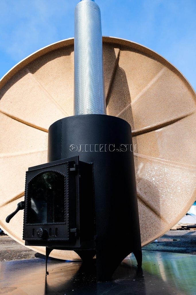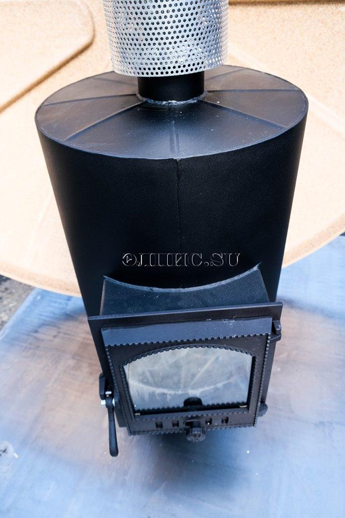 Габариты (ширина х высота х длина) 770 х 500 х 600 мм. Дымохода - ?115 мм. Глубина топки - 450 мм. Мощность - 22 KW. Вес – 63 ( AL 42) кг. Площадь теплообменника 1.1 (1.45) м2. Материал - углеродистая оцинкованная сталь или нержавеющая сталь, морской алюминий. Для правильного выбора водогрейной печи для купели, необходимо определиться, чем Вы планируете топить печь и какую воду использовать (пресная, соленая). При использовании солёной (морской) воды, лучше всего подойдет котел из морского алюминия. Котлы из оцинкованной и нержавеющей стали при использование соленной воды будут подвержены сильной коррозии, в отличие от котлов из морского алюминия. Если Вы будете использовать пресную воду и имеете возможность приобрести каменный уголь, то советуем обратить внимание на котел из оцинкованной стали. Преимущество при использование каменного угля заключается в том, что достаточно растопить печь, засыпать каменный угль и через 3-4 часа можно принимать горячие ванны, в отличие от топки котла дровами, которые необходимо подбрасывать в печь каждые 20-30 минут. Подведем итог. Котел из оцинкованной стали. Преимущества: *Доступная цена *Позволяет топить котел каменным углём *Неприхотливый Недостатки: *Тяжелый *Подвержен коррозии Алюминиевый котел: *Более быстрый прогрев воды в сравнении с оцинкованным котлом *Легкий *Можно использовать соленую воду *Устойчив к коррозии Недостатки: *Высокая стоимость *Требует строго соблюдения правил при растопке и сливе воды из купели *Невозможность использования каменного угля.