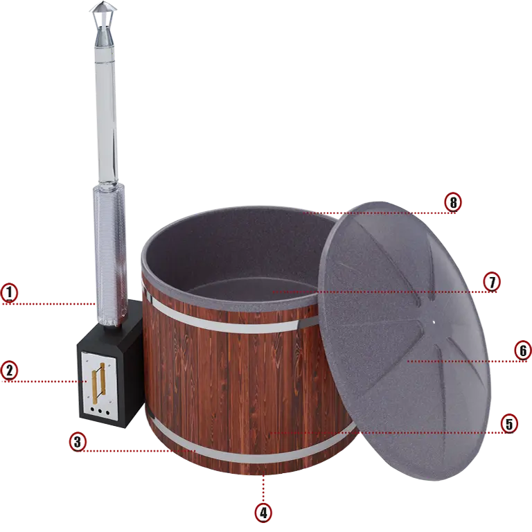 Данная комплектация фурако ( уличной купели с печным нагревом) включает в себя: