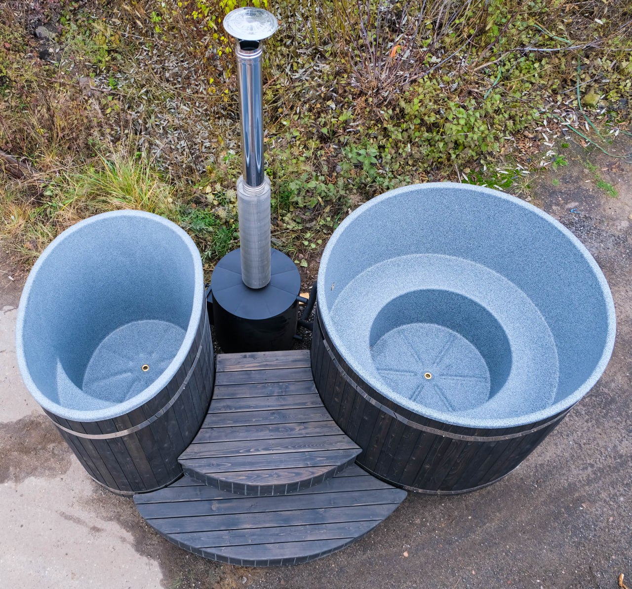 Под заказ можно изготовить тандем с возможностью подогрева одной печью двух купелей.